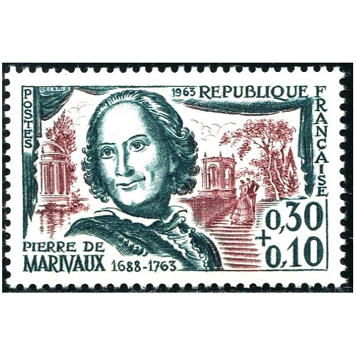 Célébrités Pierre de Marivaux (écrivain, bicentenaire de sa mort) 30c+10c Vert-bleu et lie-de-vin Célébrités Pierre de Marivaux...