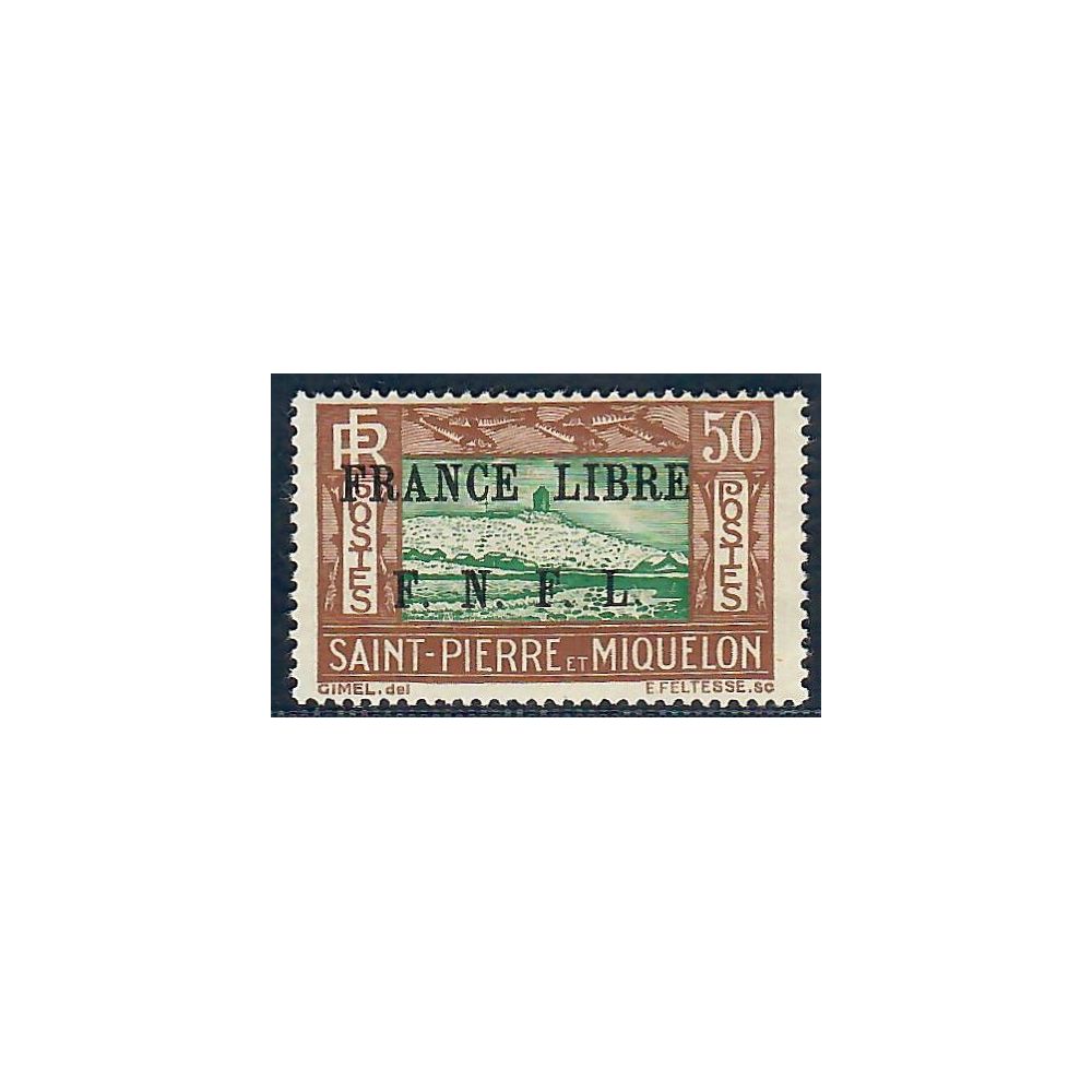 St Pierre et Miquelon, 50c. Brun et vert, signé Brun et Scheller, Neuf, TBDestinataire :
