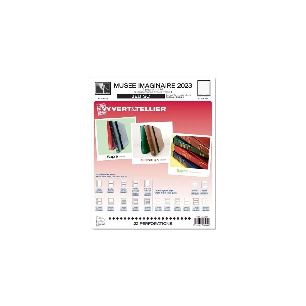 Avec une mise en page aérée, les jeux et intérieurs SUPRA sont idéals pour une identification rapide de vos timbres. Tous les timbres sont reproduits en noir et blanc dans l’ordre chronologique de parution, avec leurs numéros Yvert et Tellier et leurs valeurs faciale. Les jeux sont équipés de pochettes individuelles pour permettre une bonne conservation des couleurs, et de lutter contre la poussière, l’adhérence et l’humidité.