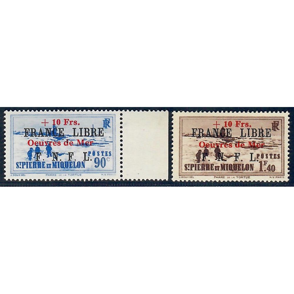 St Pierre et Miquelon, série de 2 valeurs surchargés ŒUVRES DE MER, signé Brun et Scheller, Neuf luxeDestinataire :