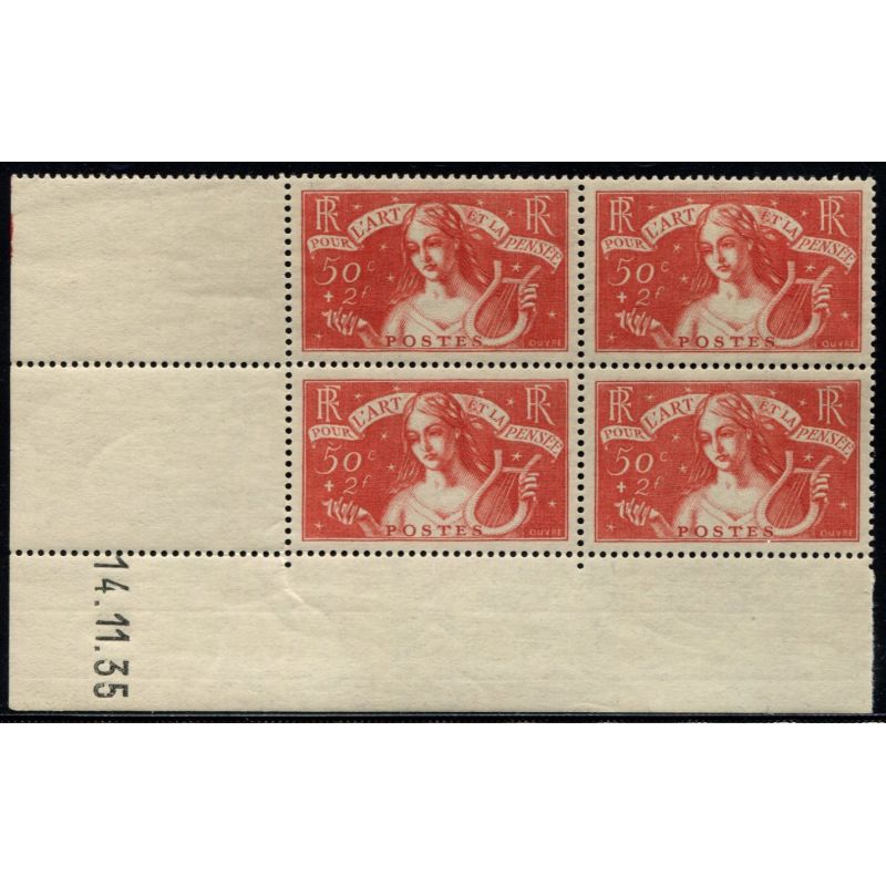 Art et Pensée de 1935 en bloc de 4, coin daté, neuf luxe